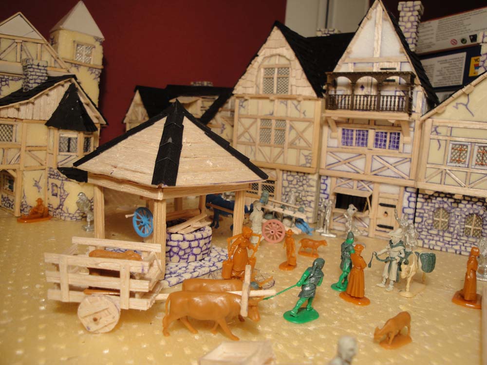 Prezentuję kilka nowych fotek. Wybudowałem studnię na środku placu i postawiłem kilka straganów dla kupców. Pojawiło się też kilka nowych figurek, które będę musiał jeszcze poddać małej obróbce.